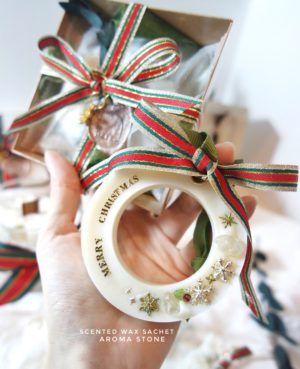\ CHRISTMAS Gift Idea / Clear Quartz + Garnet Stone + Olivine Crystal | Snowflake Scented Wax Sachet | Aroma Stone